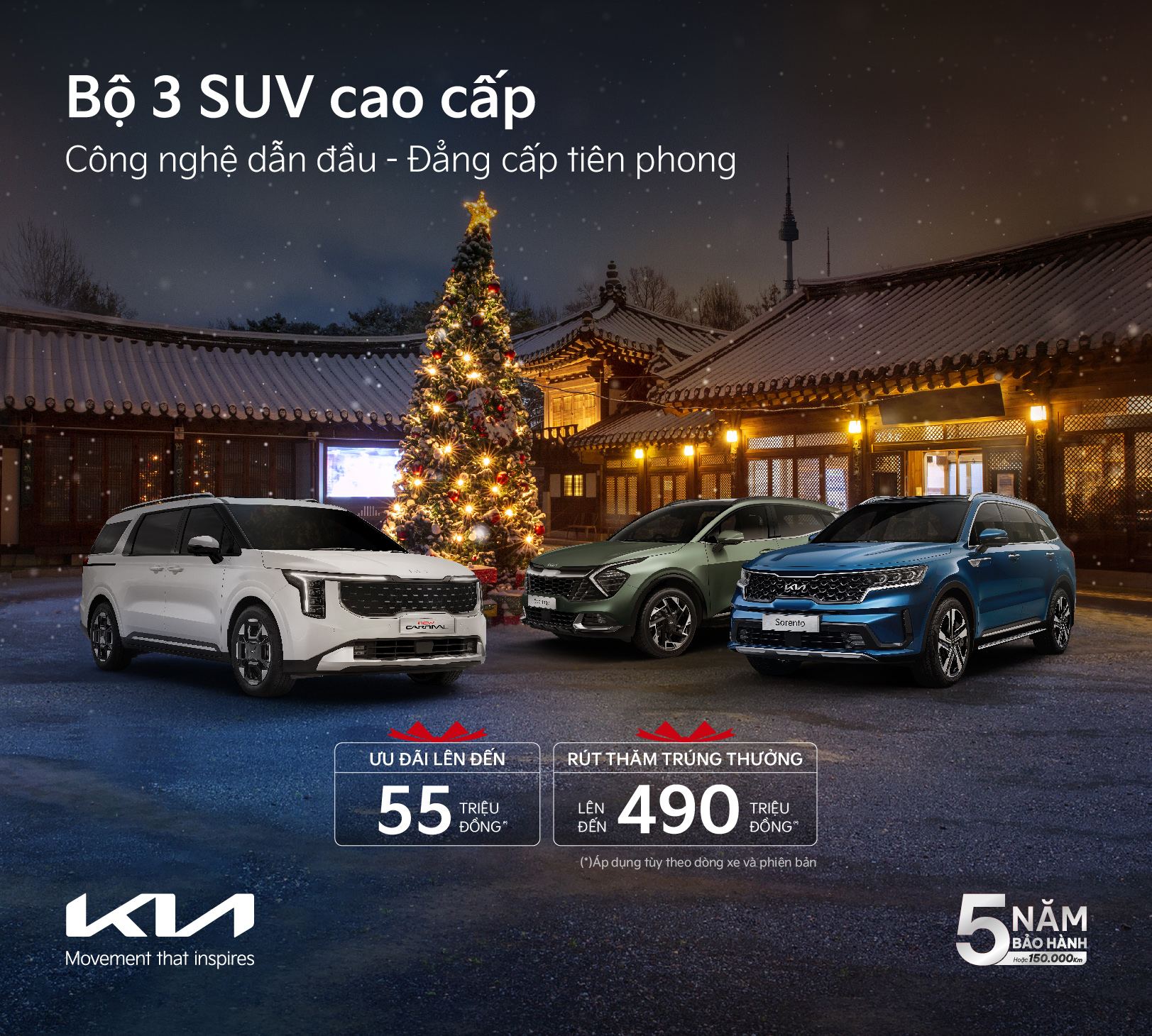 Từ 15/11/2024, Kia Việt Nam triển khai chương trình “cùng Kia đón Tết tại Hàn Quốc”. Khách hàng mua xe Kia K5 hoặc Kia Sorento tại các showroom trên toàn quốc sẽ có cơ hội tham gia rút thăm trúng thưởng với nhiều giải thưởng hấp dẫn. Chương trình áp dụng theo các điều kiện và điều khoản do thương hiệu quy định.